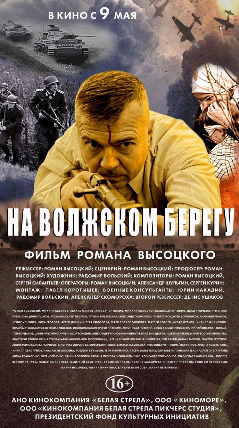 2024 г.  — «На волжском берегу».  Производство:  АНО Кинокомпания «Белая Стрела», ООО «Кинокомпания  Белая Стрела Пикчерз Студия», ООО «Киноморе». Военная драма, полнометражный художественный фильм.  Роль —  снайпер Пётр Гончаров, главная роль.